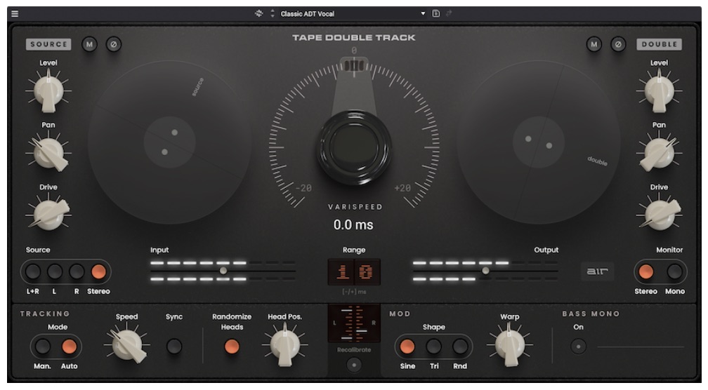 Plugin gratuito "Tape Double Track" de AIR Music Tech