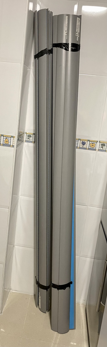Vendo 15 canaletas semicírculares de media caña de 2 metros adhesivas marca SOLERA modelo Ref. CSG9 de 15 x 90 mm, como nuevas sin quitar el adhesivo de la parte posterior de abajo compradas en Obramat todas por (60€)