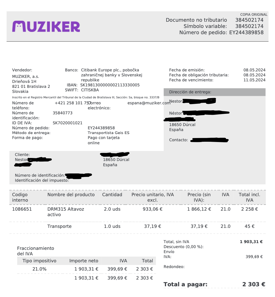 - Rango de frecuencias: 43 Hz - 20 kHz