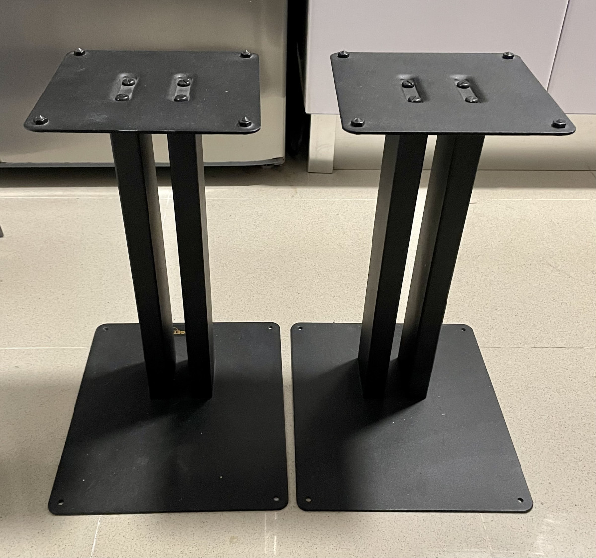 Vendo 2 soportes (Stands de Speakers) Made in UK - England; de la marca Target Audio Products Serie HR60B 24” alta rigidez en acero 100% metal grueso color negro en perfecto estado de uso y de estética.