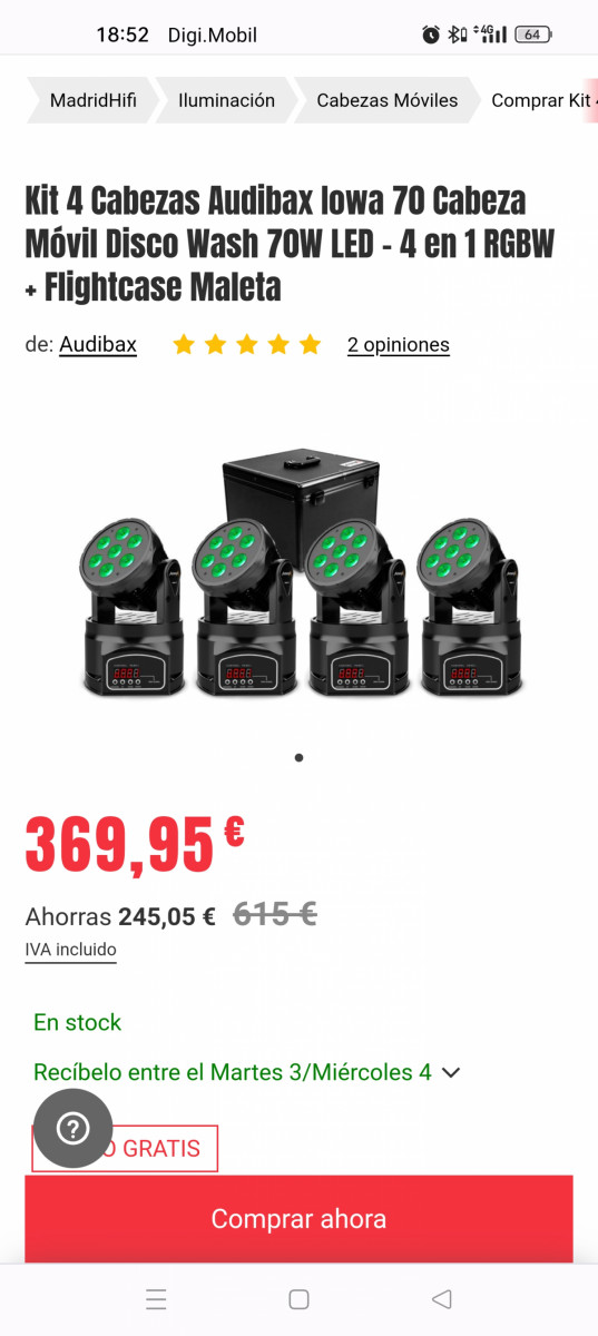 4 cabezas móviles Audibax Iowa 70 con maleta de transporte.