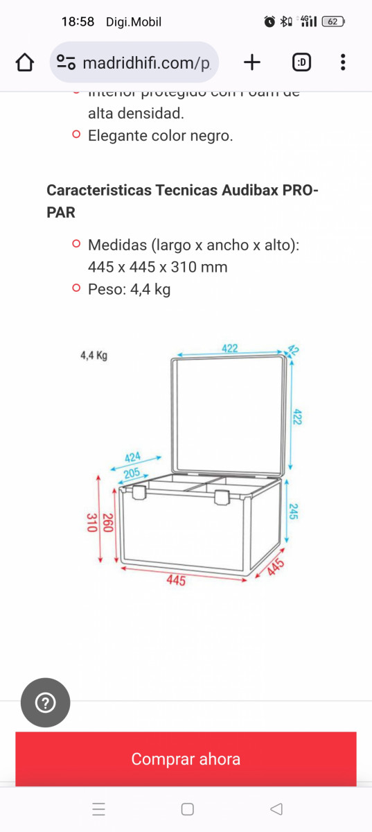 Características declaradas por el vendedor