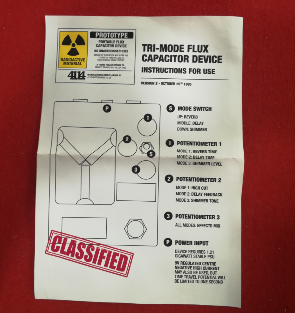 Incorpora una recreación del condensador de flujo, que se ilumina al activar el delay y un mediador de roentgen retroiluminado que reacciona a la intensidad de la interpretación
