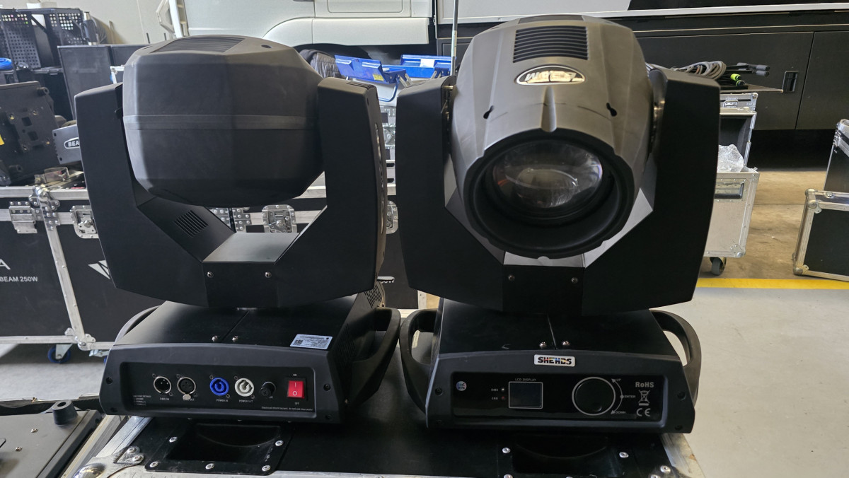 tengo 6 cabezas moviles 7R de la marca SHEHDS con sus correspondientes flihgcase y repuestos ( lamparas y gobos para todas ) precio por pareja mas flihgcase 400 euros.