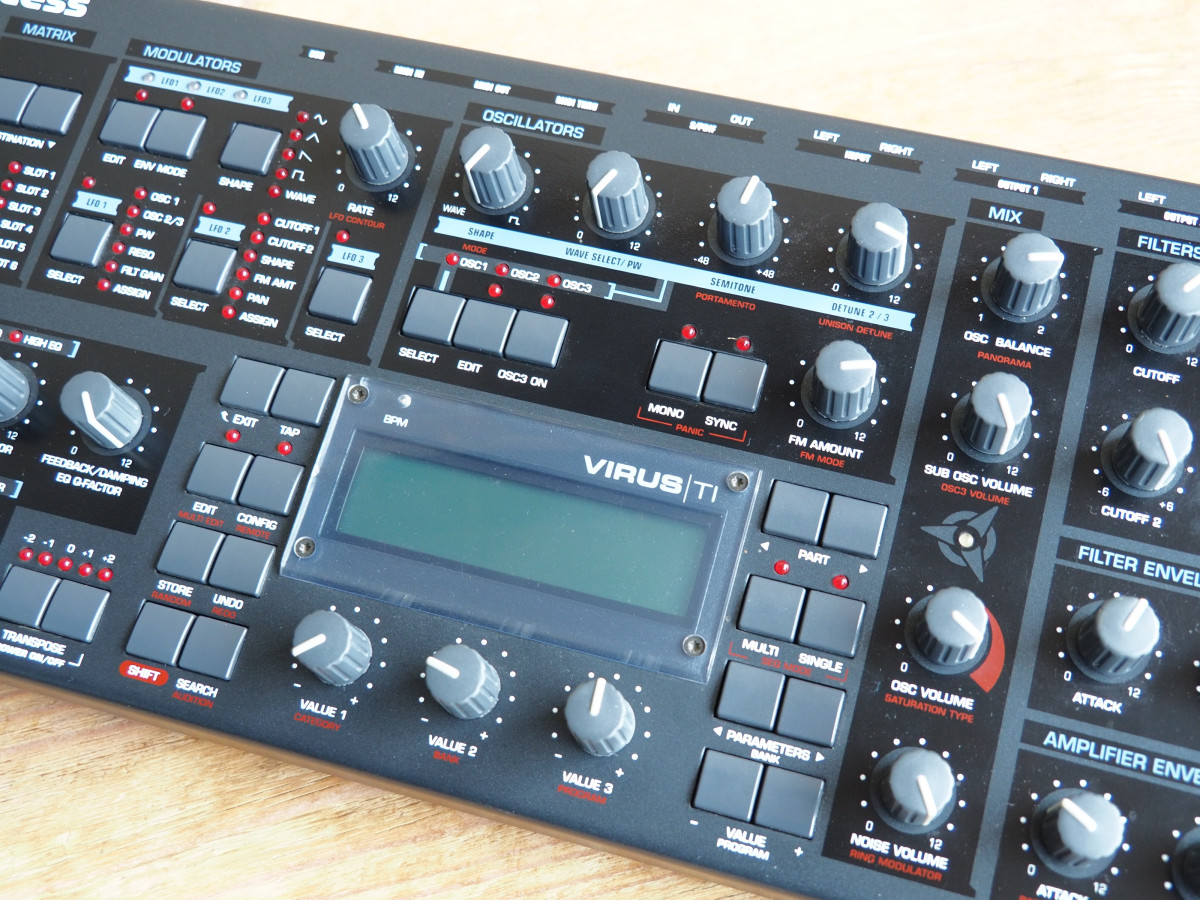 Access Virus TI hay mucha información por la red, pero básicamente es igual al TI 2 pero sin overclock en los procesadores, por lo que la polifonía es más baja pero es sólido como una roca.