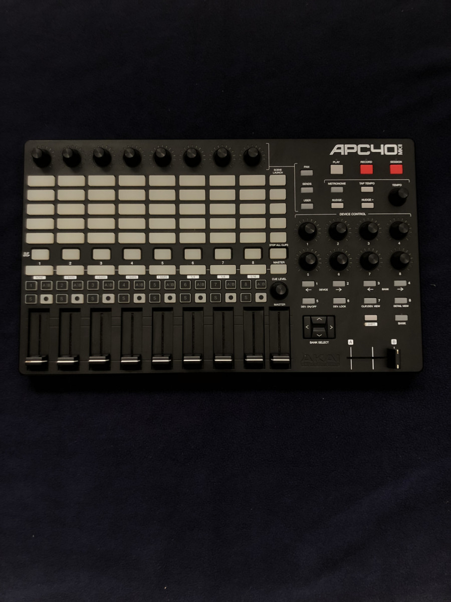 Controlador MIDI Akai APC40 MKII en color negro. Diseñado para Ableton Live.