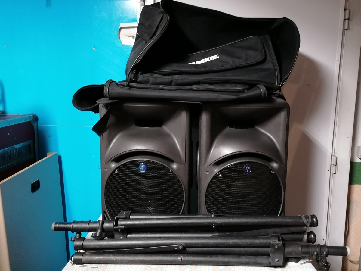 Incluye 2 fundas Mackie originales a medida con bolsillo extra, y doy también 2 trípodes de hasta 2m con seguros