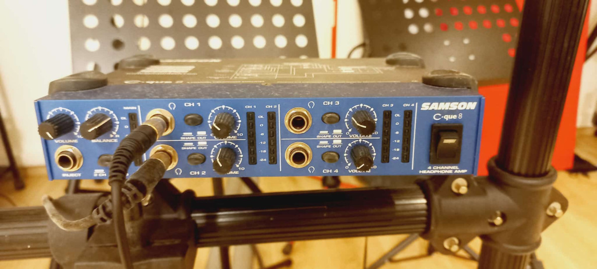 Vendo amplificador de auriculares marca Samson. 4 Canales con 8 salidas, volumen independiente por canal, led de 6 segmentos por canal, volumen general y balance, salidas en Jack 1/4". Estero / Mono.