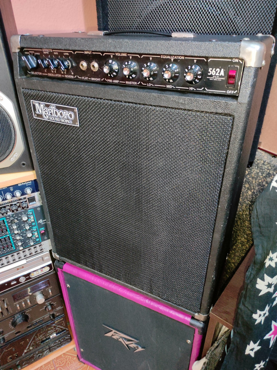 Amplificador tipo combo construido en Nueva York en los años 70-80. Funcionamiento 100% a transistores con varias características especiales que le confieren un sonido más "orgánico" o "valvular". Las modificaciones a nivel de electrónica, caja y altavoz permiten exprimir mejor las cualidades sonoras inherentes a ese modelo (he tenido otros amplis Marlboro y todos tenían ese "algo" que no he encontrado en otros montajes a transistores).