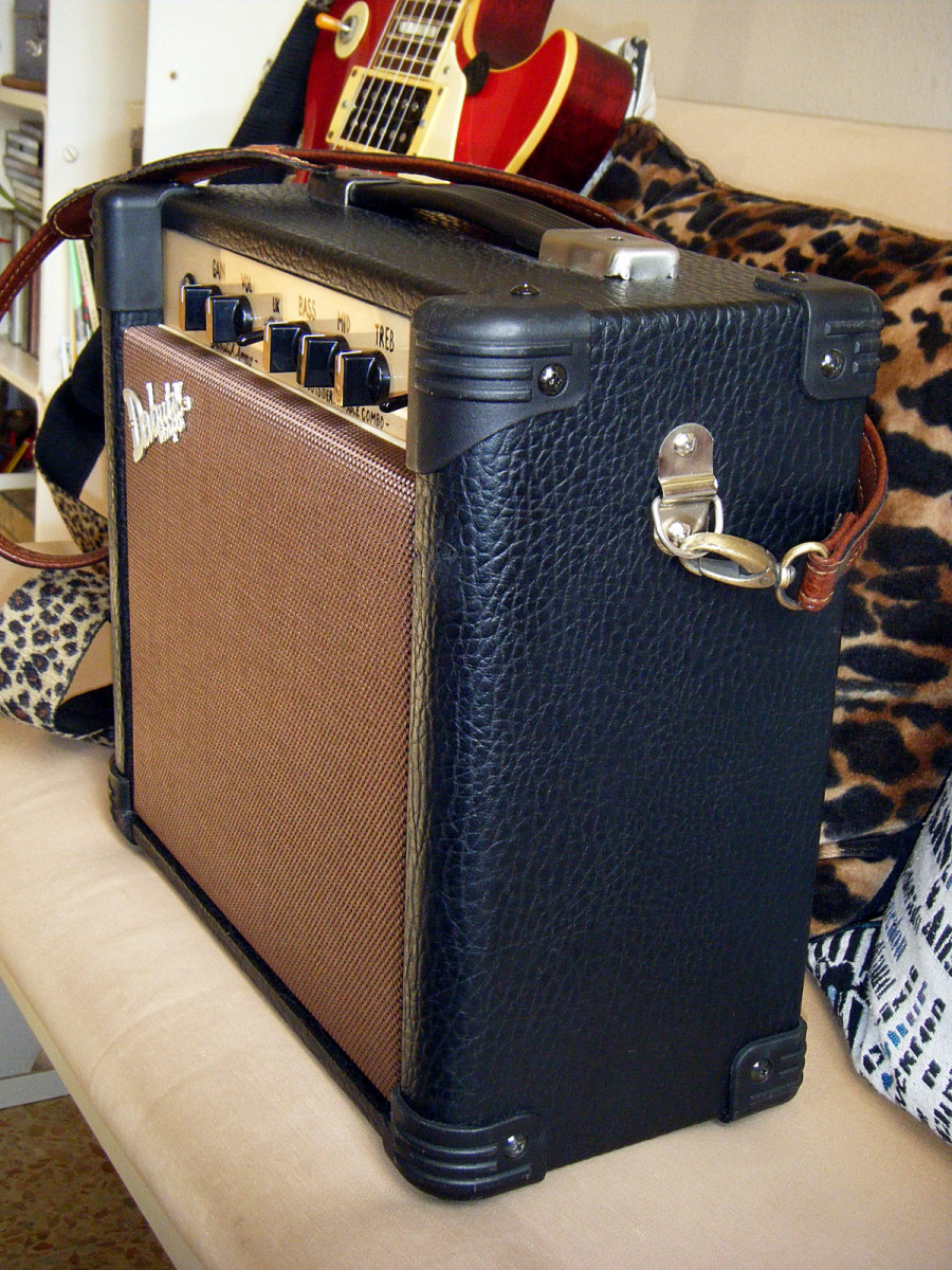 Dicen que "la necesidad es la madre del ingenio". He tenido varios amplis portátiles y ninguno me ha convencido: carácter sonoro pobre, respuesta nula en graves, simulaciones digitales que tienen un serio problema con los agudos, etc. ¿Por qué no construir yo mismo un amplificador que trate de dar lo mejor en un formato portátil y a la vez pueda ser usado "sin reparos" en un entono doméstico? Quería obtener la mejor respuesta posible en graves (ese es el mayor "talón de Aquiles" de los amplis compactos / portátiles) y eso ha sido posible gracias a una concienzuda selección de altavoz y remodelación de la caja (panel trasero y bafle tipo "bass-reflex" de madera laminada antigua).