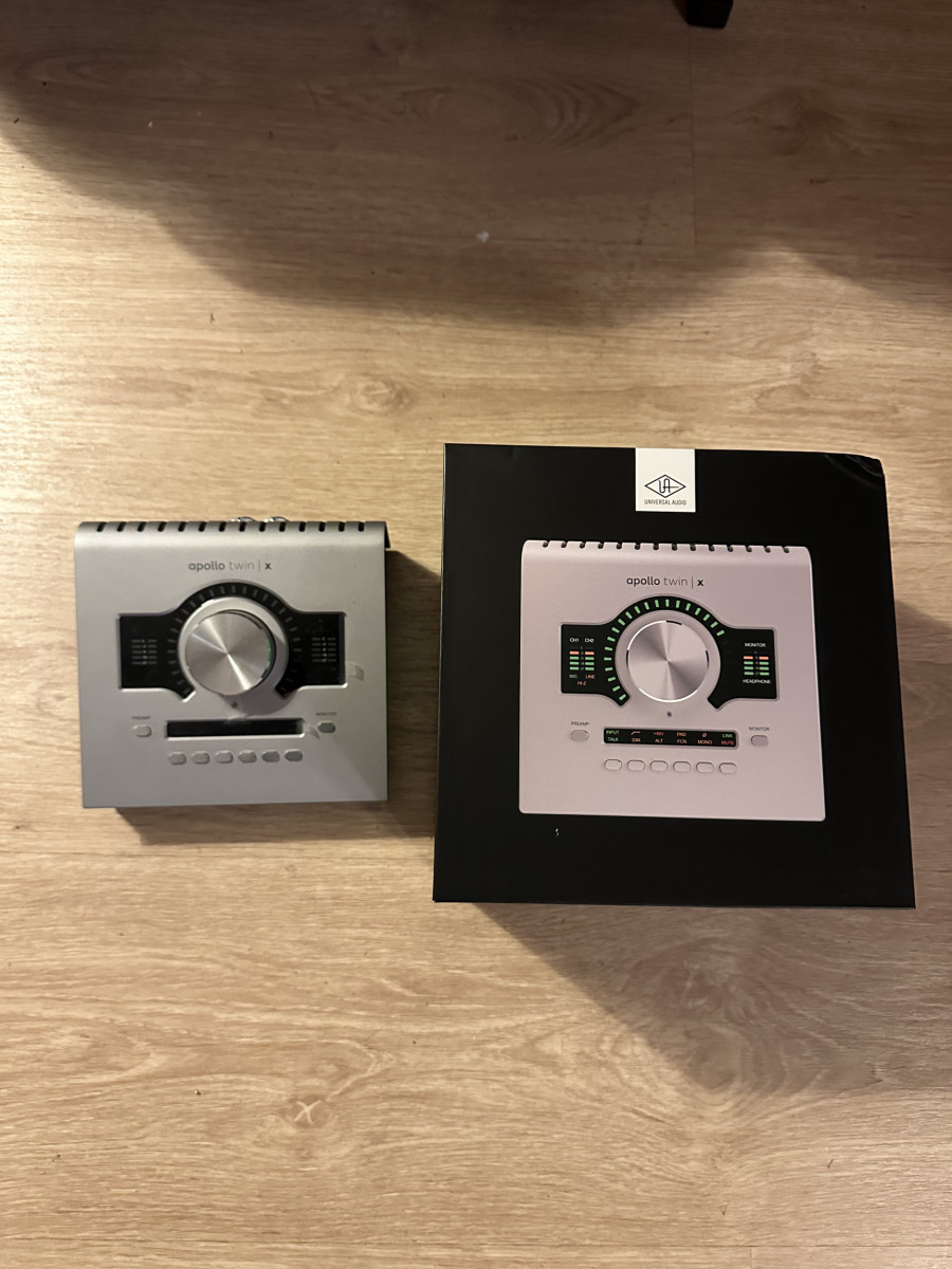 Interfaz de audio Apollo Twin X DUO de segunda generación. Sin apenas uso, en estudio, con plasticos protectores y caja original. Con factura de compra el 3/3/2025 en distribuidor oficial y en garantia, Interfaz de audio Thunderbolt 3 de 10 x 6 Con procesador UAD-2 Duo Convertidor AD/DA de 24 bits / 192 kHz 2 preamplificadores de micrófono Unison Función "Auto Gain" Alimentación fantasma de +48 V Micrófono Talkback integrado Rango dinámico: 127 dB Funciones de monitor con controles para Mono, Mute, DIM y ALT Diseño: Sobremesa Para Mac OS y Windows Incluye el paquete de plug-ins Essentials+