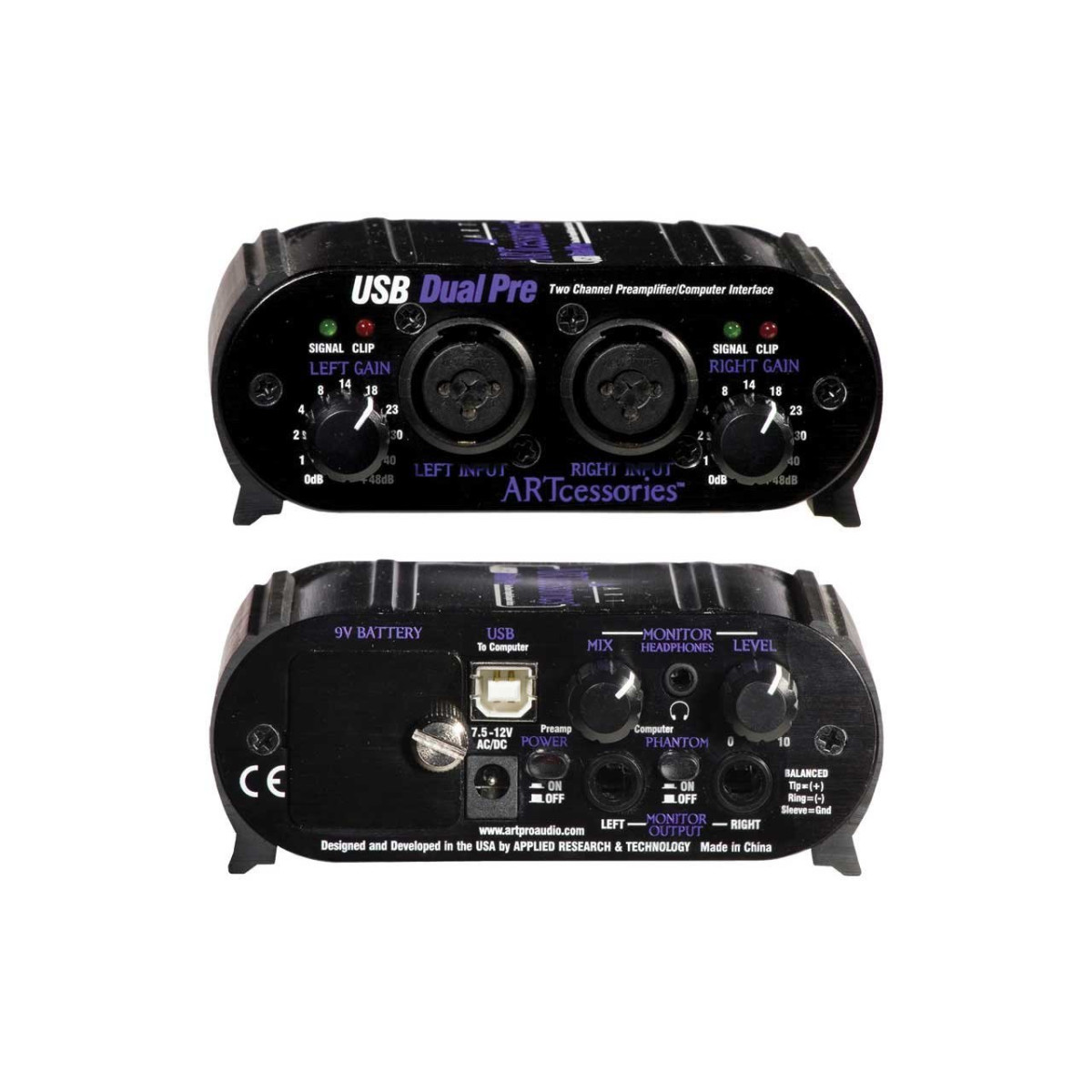 Interfaz de audio / Previo dual ART Dual Pre USB con dos entradas XLR.
