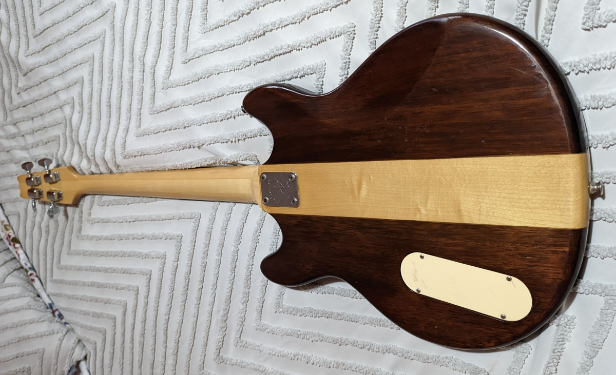 Escala 34". Magníficamente construido en caoba y fresno, con puente estilo Gibson, mástil de arce y diapasón con un palorrosa espectacular.