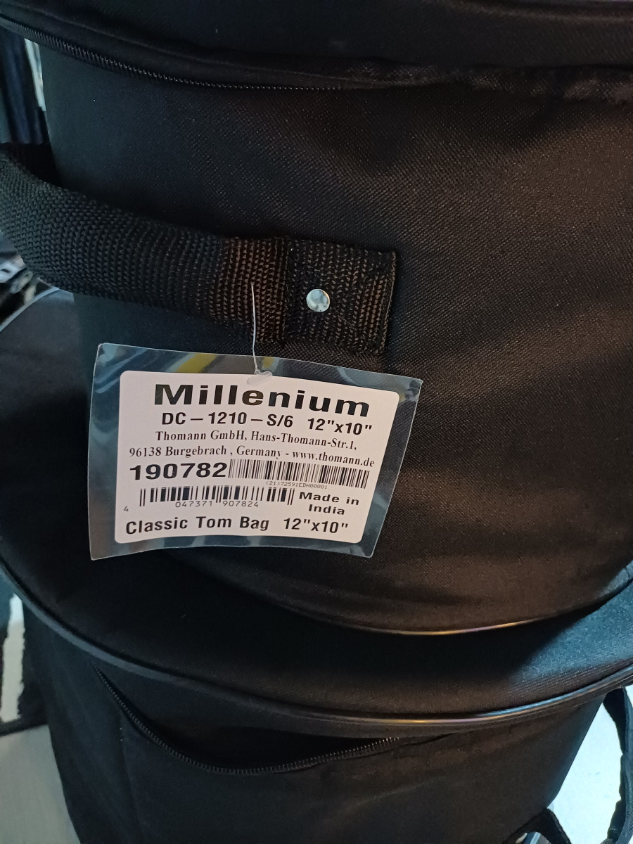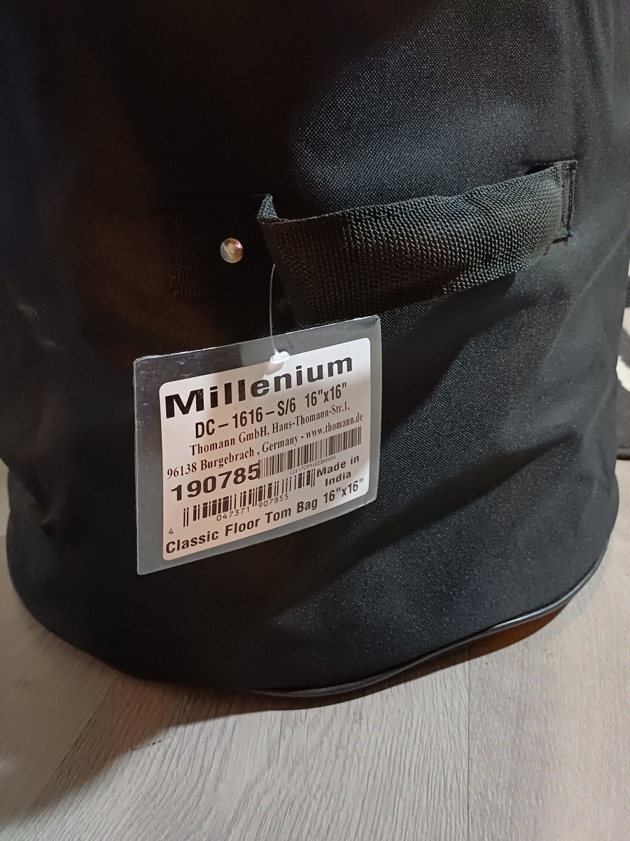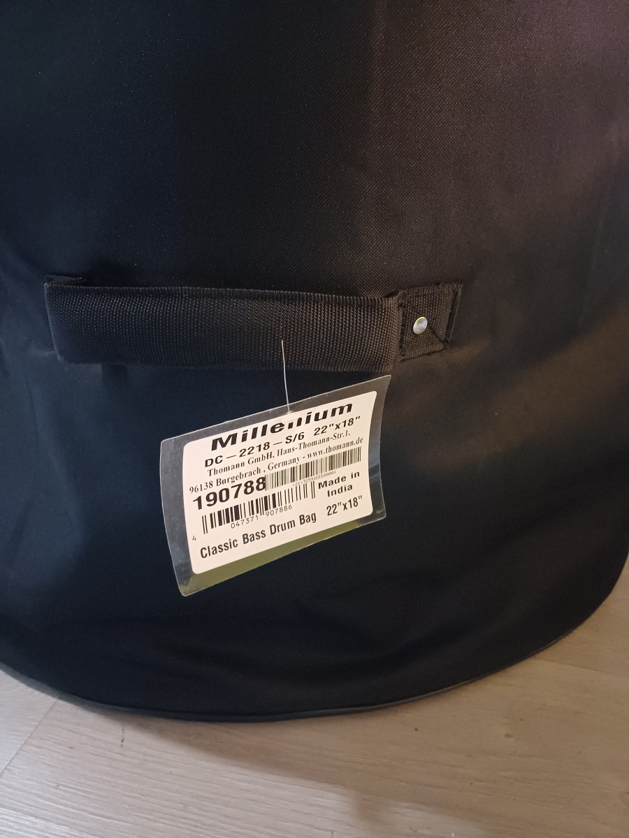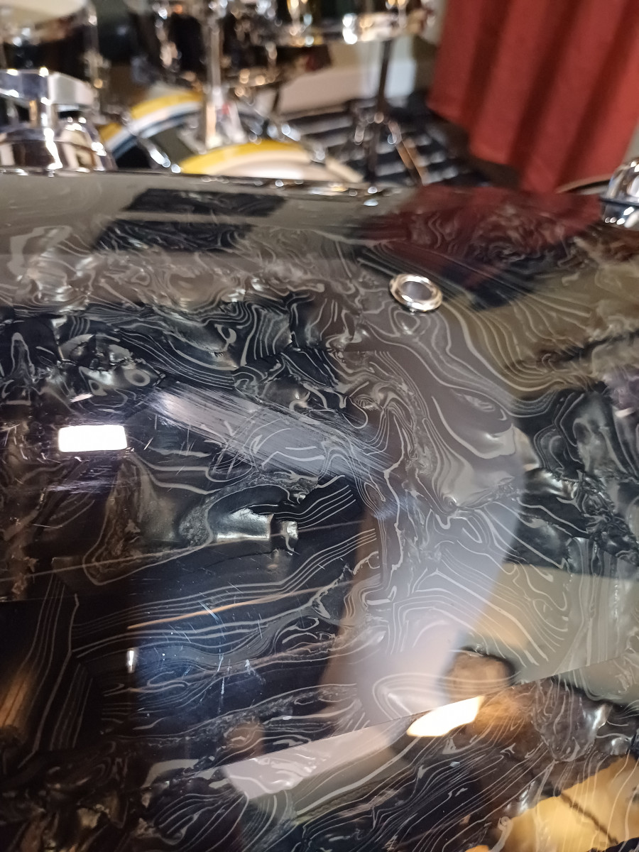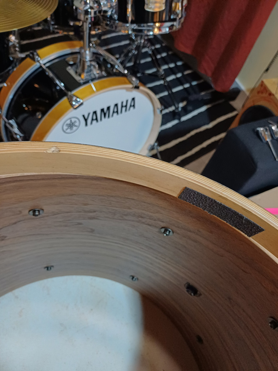 Tiene una muesca en el aro del lado del batidor del bombo. Justo en la cara que va contra el parche. Marcas de uso habitual.