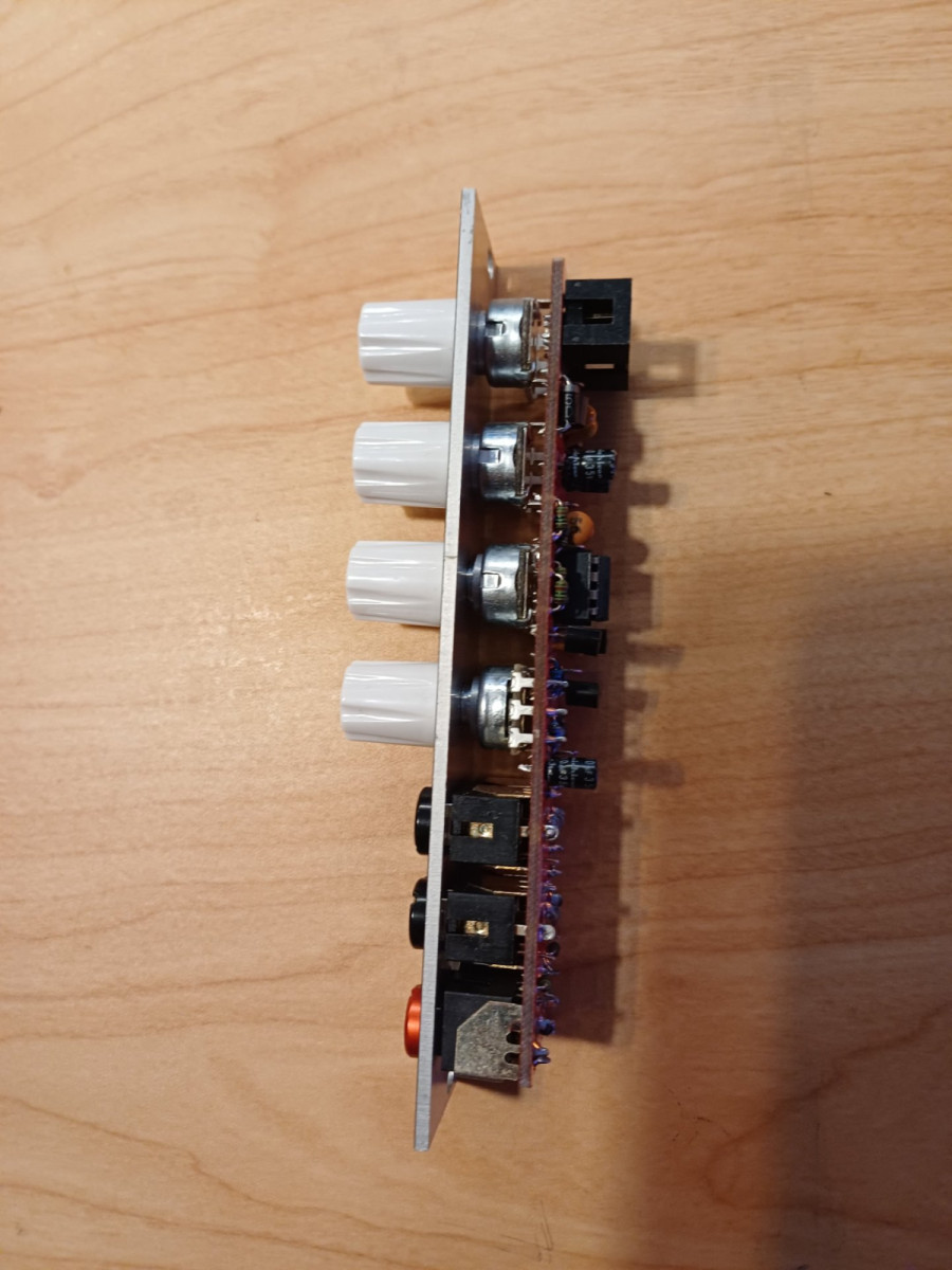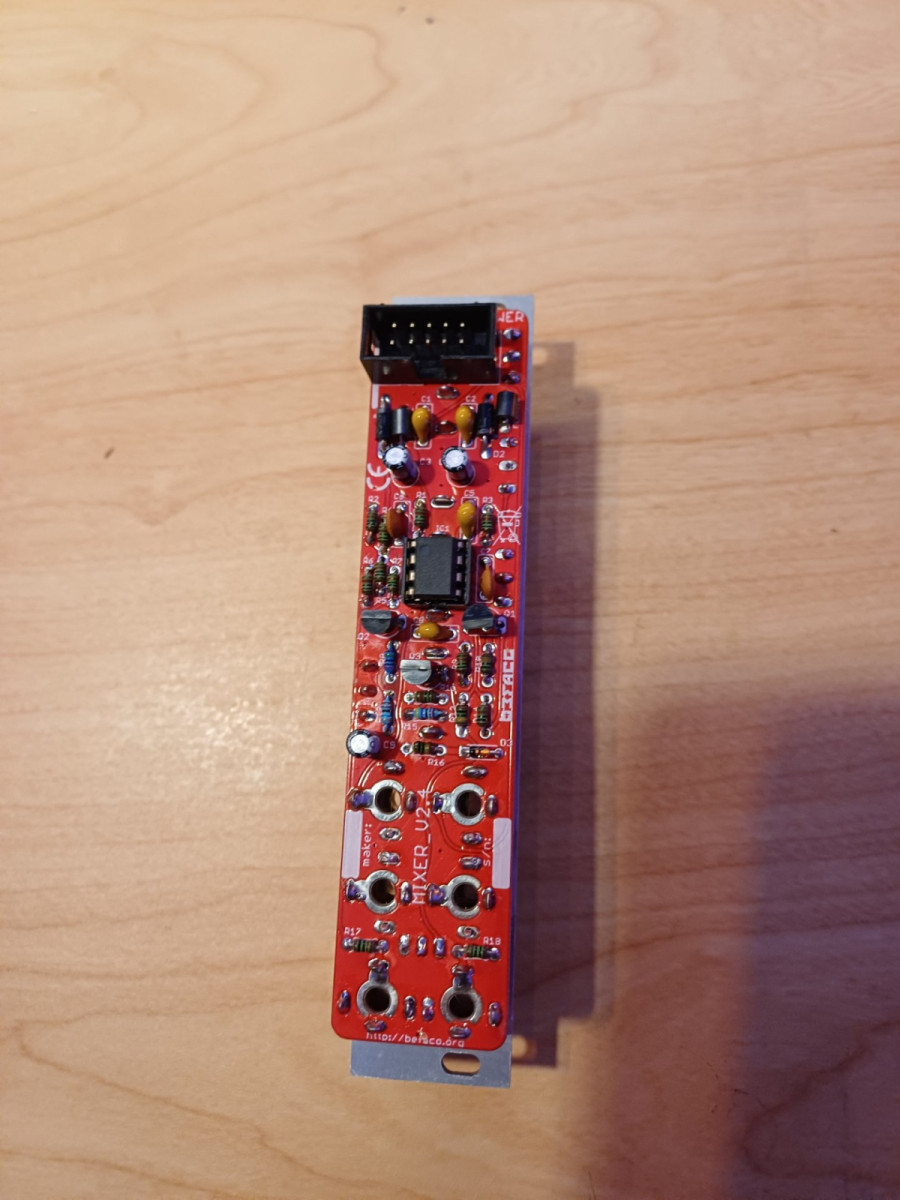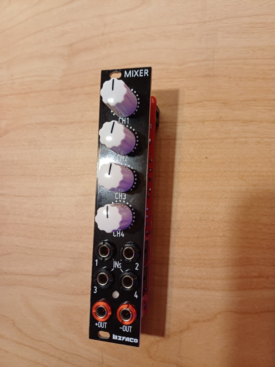 Módulo mezclador Befaco para Eurorack. Hace papel de inversor tb. Para audio y cv.