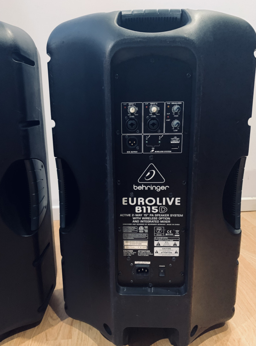 Pareja de altavoces activos Behringer B115D, de 1000W cada una.