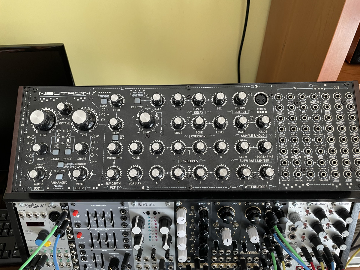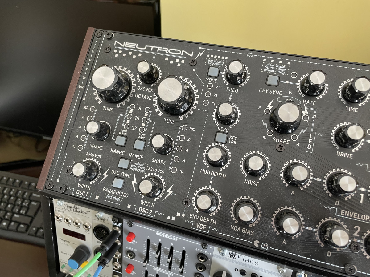 Pongo en venta mi Behringer Neutron, modificado con un frontal negro a medida. No se trata de los típicos stickers que se ven habitualmente, es un panel metálico nuevo a medida que fabricaban unos chicos australianos llamados Audio Parasites hace unos años. El panel con envío y aduanas me salió por 55€ y creo que actualmente no se puede conseguir.