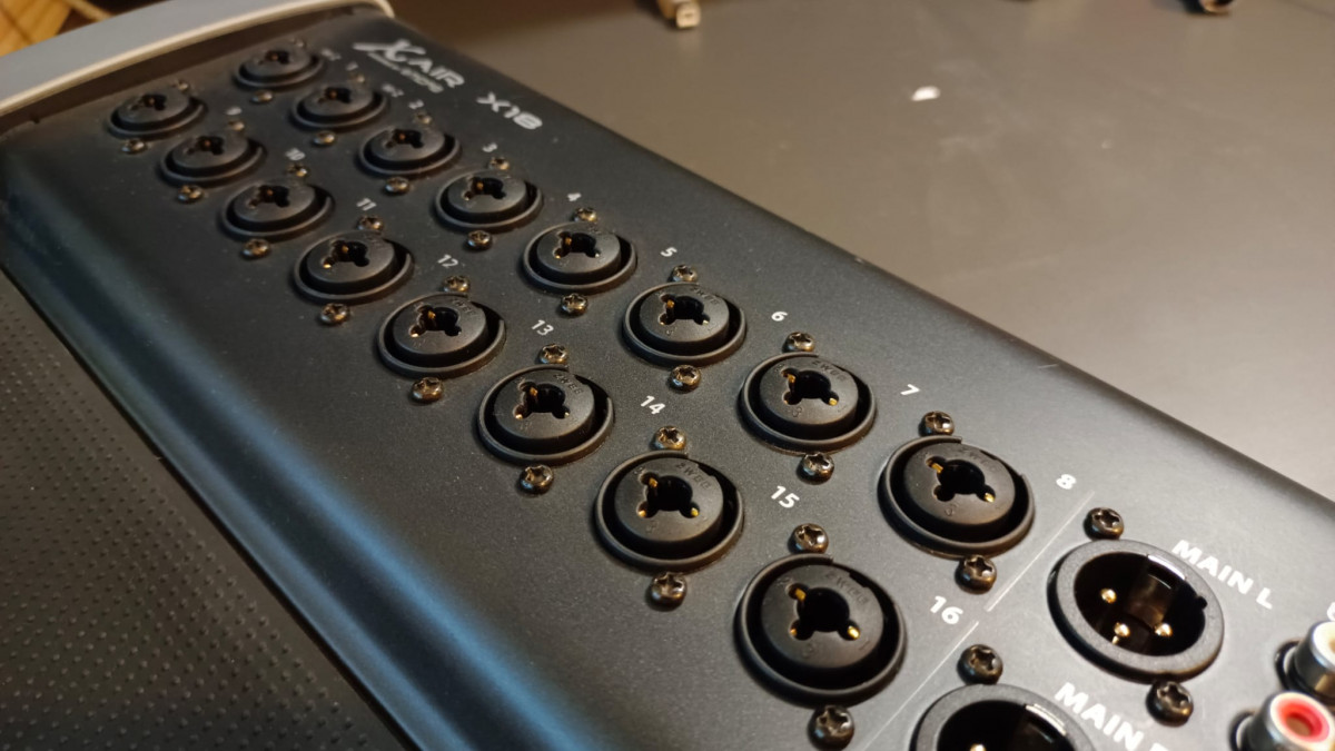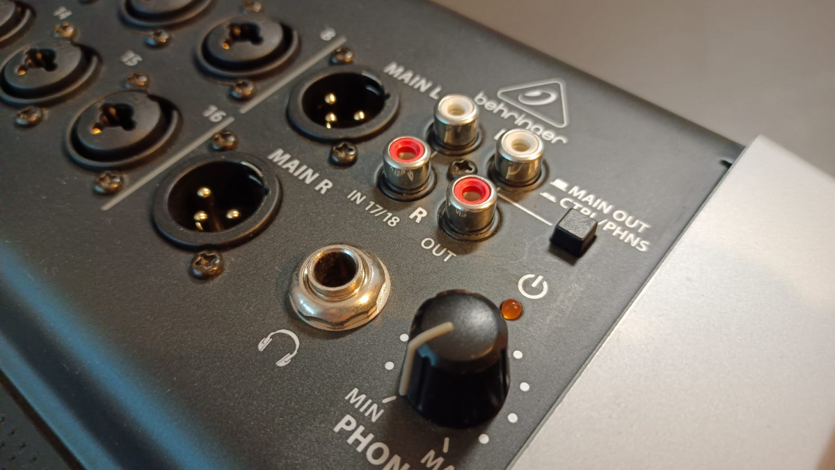 6 envíos auxiliares TRS y dos salidas main XLR, así como salida estéreo RCA y conector de auriculares