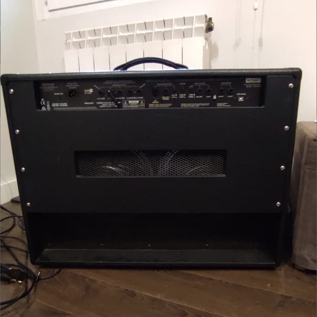 -Tiene reverb incorporado, emulacion de pantalla para ir directo a mesa sin tener que microfonear, conexion a ordenador perfecta para grabar, y tambien salida de auriculares.