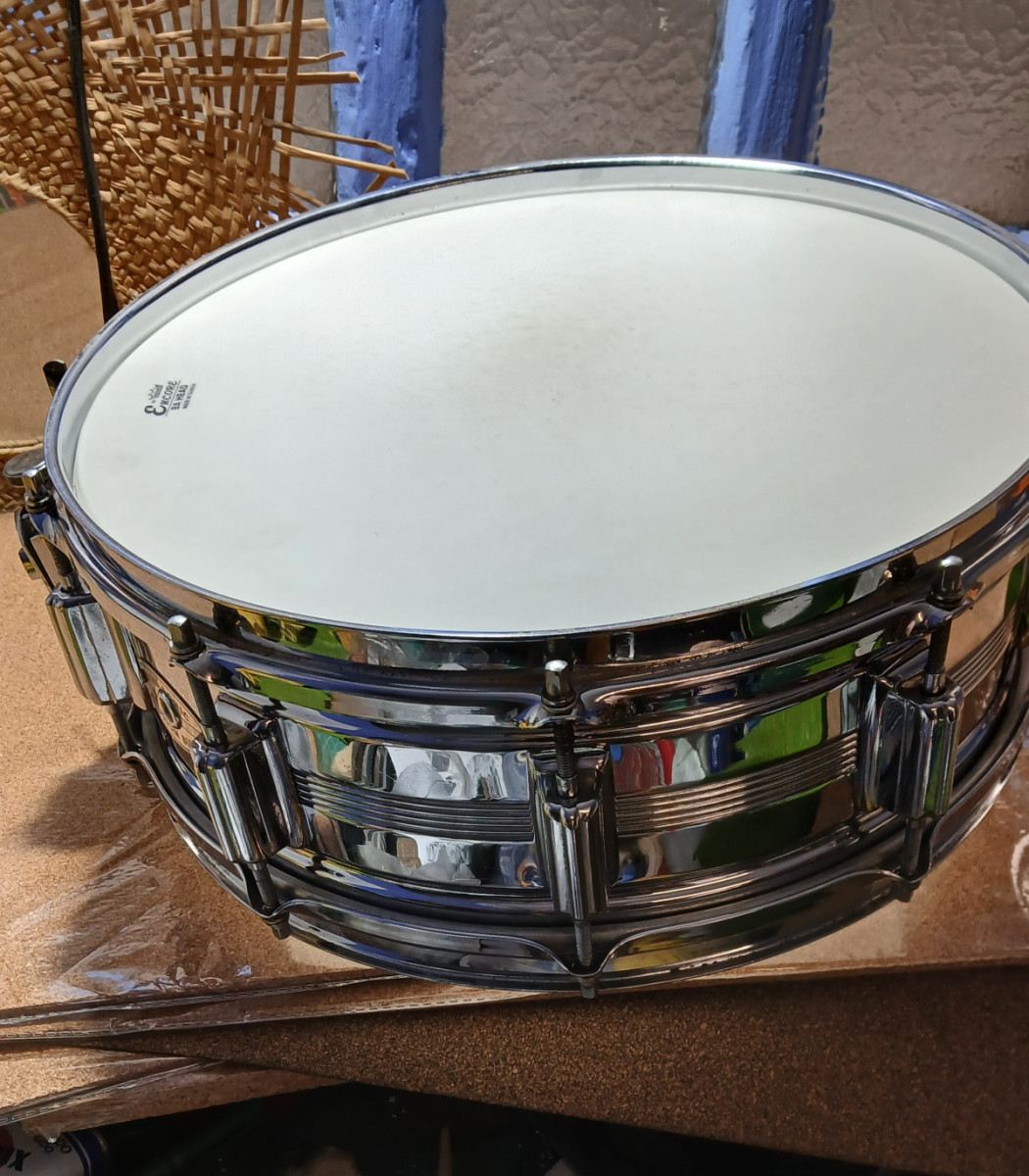 Caixa/Tabal Rogers Dynasonic (crec d'entre el 70 i el 73, és força complicat saber-ho amb precisió) Molt bon estat. Pells sols tocades per enregistrar vídeos de les meves lliçons. Alguna picadeta i una mica de rovell a les rutlles. Tots els mecanismes funcionen perfecte. No accepto canvis, la caixa està a Barcelona. Es pot enviar, i també entregar en mà prop de Barcelona, 66 inclòs.