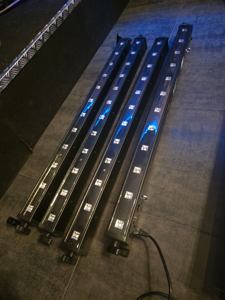 Barra de luz negra con 12 LEDs ultravioletas superbrillantes de 3 W, un ángulo de haz de 65º y refrigeración por convección para un funcionamiento silencioso