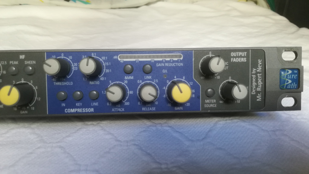 Previo, equalizador y compresor de exquisita calidad sonora. Diseñados por Rupert Neve. Entradas y salidas para microfono y linea. Conexiónes para faders externos y link de compresión.