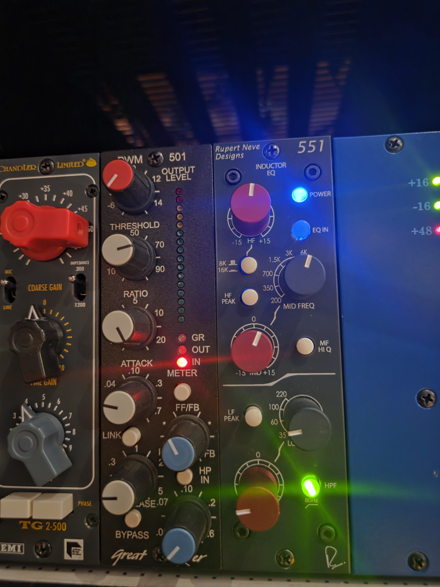 También vendo el ecualizador serie 500 Rupert Neve Designs 551 que se puede ver en la foto. También como nuevo.