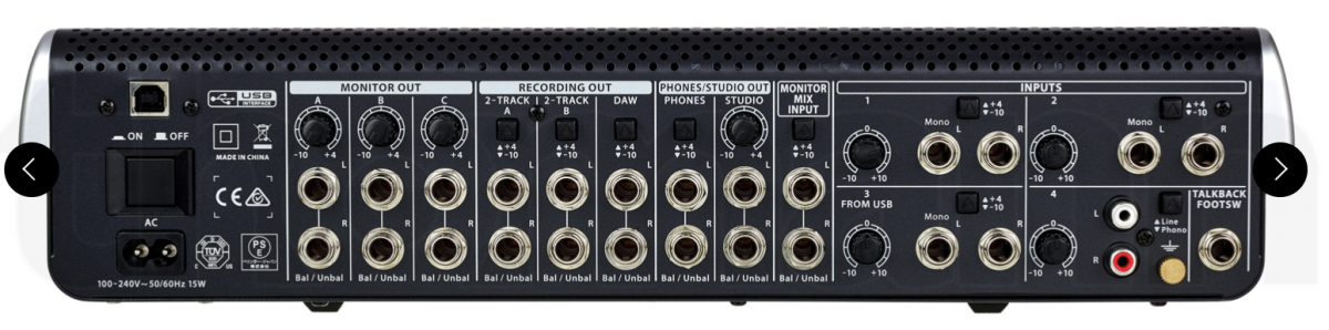 4 entradas estéreo con controles de nivel independientes, además de entrada para mezcla de monitor para tu DAW