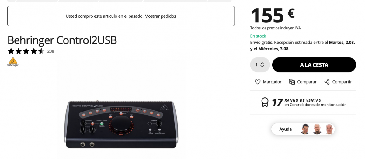 Vendo controlador de monitores Xenyx Control2USB de Behringer. ¡También es interface de audio!