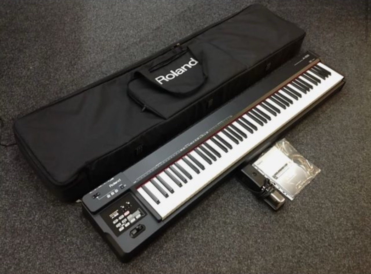 Controlador MIDI Roland A88 en color negro, con funda de transporte incluída.