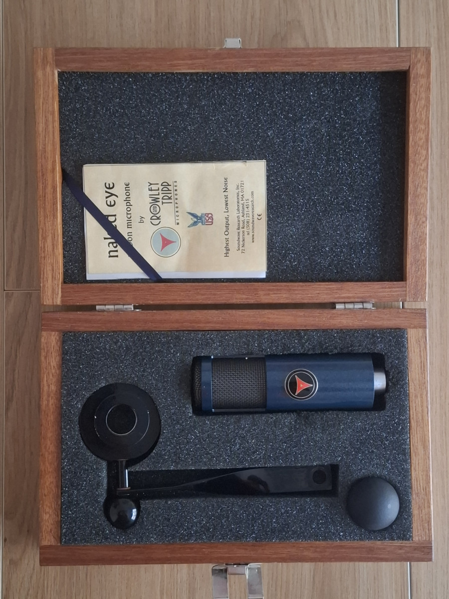 Microfono de cinta, Crowley & Tripp "Naked Eye". Esta compania ha sido adquirida por Shure y ahora este micro se comercializa como KSM313. Lo.peculiar de este micro es "dual vocing"- delante suena como un ribbon, detrás como un condensador. Tiene mucha salida- no hace falta un previo especial. Suena espectacular!!