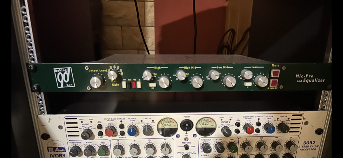 Previo de micrófono de un solo canal, balanceado por transformador Clase A, totalmente discreto (entrada y salida) con ecualizador, de la leyenda del diseño de estudio y producción Geoff Daking.