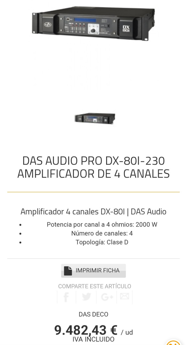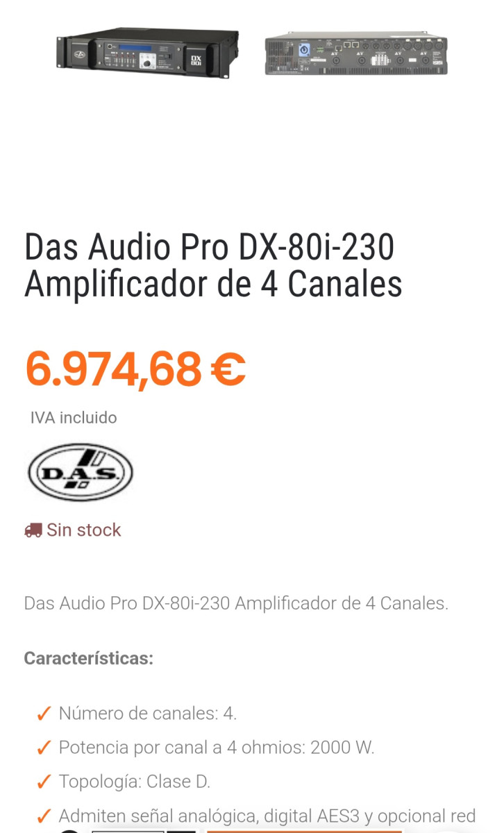 Vendo Amplificador Digital DAS DX 80i Con Dsp Incorporado.