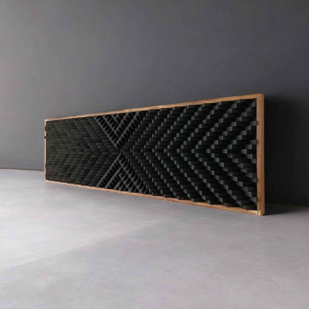 Optimiza la acústica de tu espacio con este elegante panel difusor acústico, ideal para estudios de grabación, salas de ensayo, home cinemas o cualquier ambiente que requiera un sonido más limpio y definido.