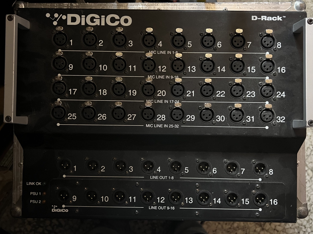 Digico SD11i con tarjeta Waves y D-Rack con 32 in 16 outs