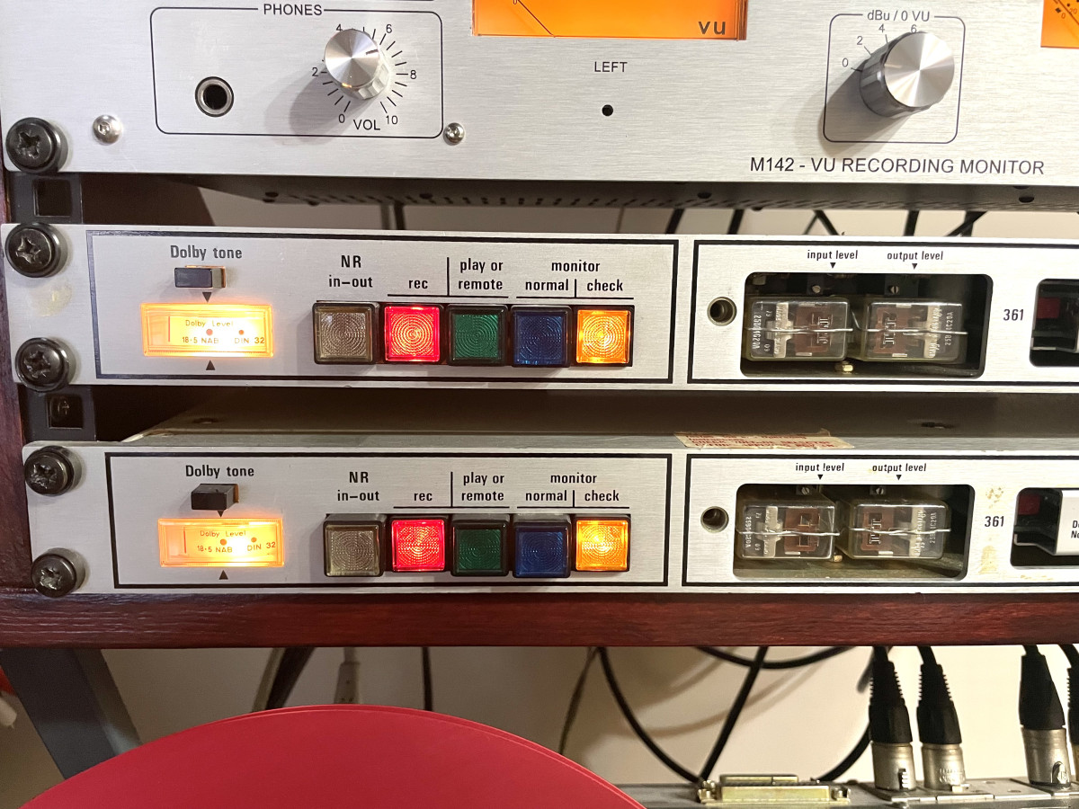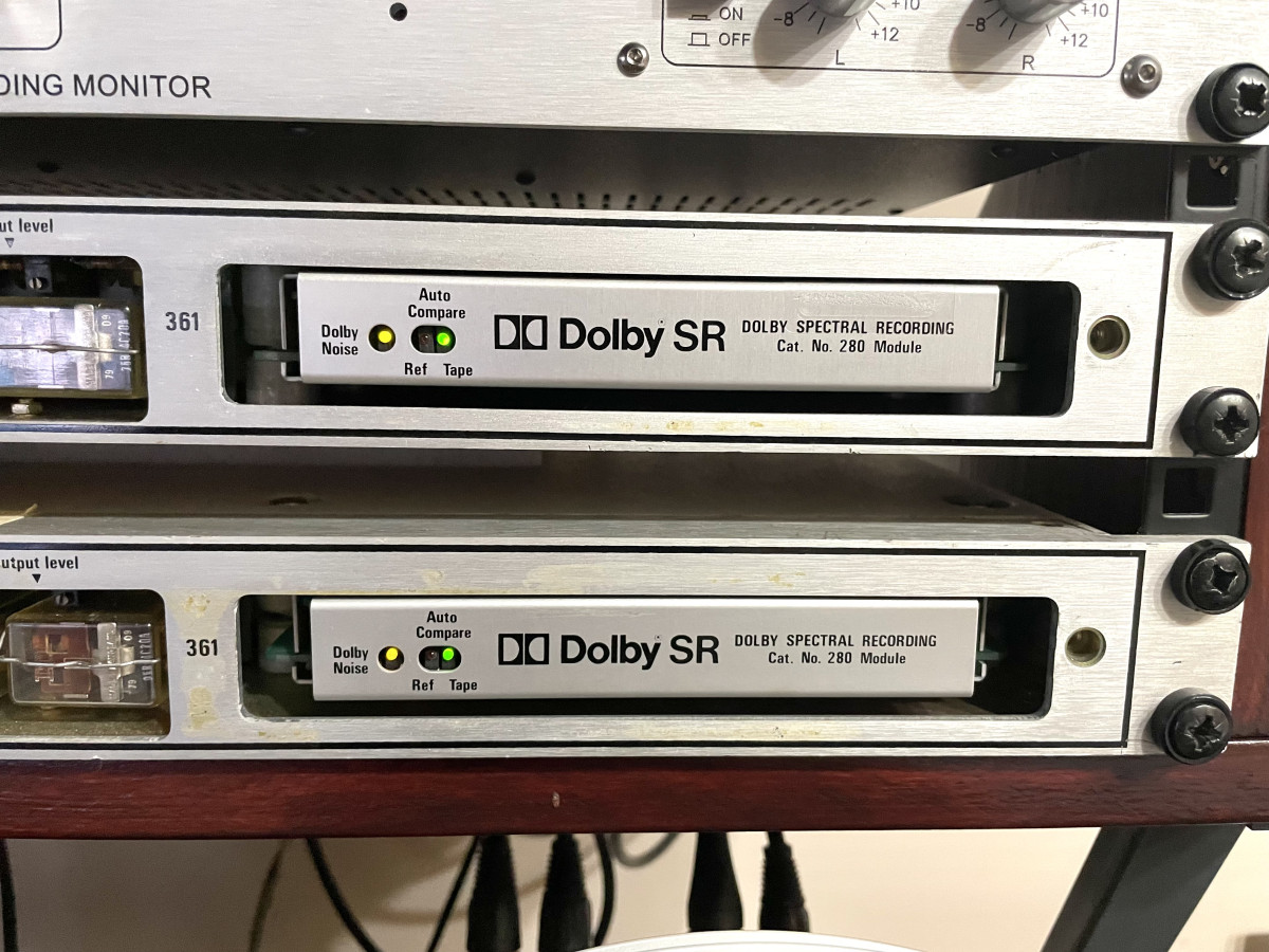 Dolby 361. Tres Unidades. Dos unidades con tarjetas Dolby SR Cat 280. Otra unidad con tarjeta Dolby A-Type Cat 22, mas otras 2 de la misma categoría (3 unidades en total). Voltaje seleccionale 115V-230V a 50-60 Hz 16VA. en muy buen estado. Espectacular para usarlo en Estudio de Grabacion con unidad de inserto en un Canal, o para Magnetofon Analogica de 2 Pistas. Equipo profesional para estudios de grabación, con el fin de reducir el “hiss” y ruido inherente a la grabación en cinta magnética. Procesamiento espectral/de banda Divide el audio en cuatro bandas de frecuencia. Hi-End. Una maravilla para procesar el Sonido.