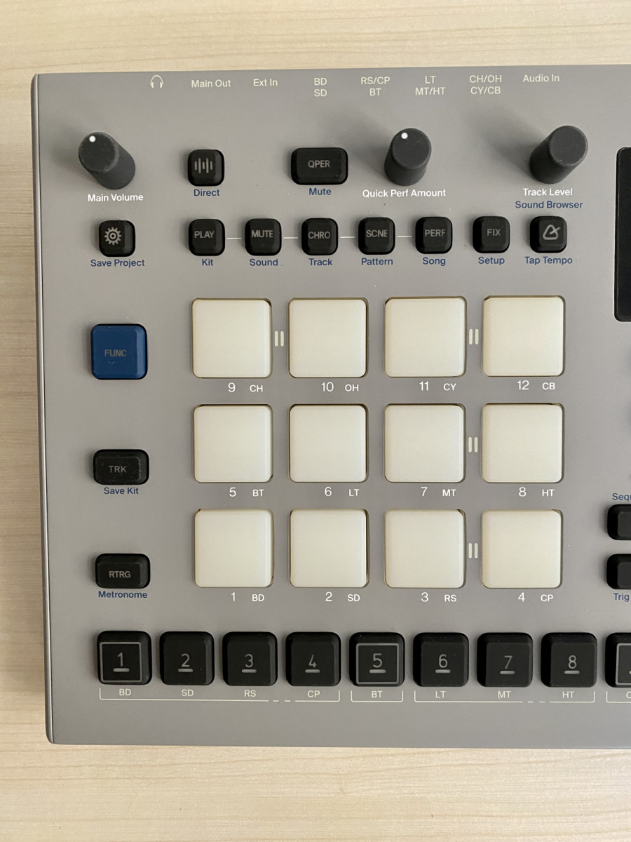 Las posibilidades que ofrece tanto para el estudio como el directo son infinitas. Cuenta con el potentísimo secuenciador Elektron para gestionar las 12 pistas de sonidos (cada una con su pad sensitivo a la presión para dispararlo) que es capaz de secuenciar de las 8 voces analógicas de generación de sonido disponibles (cuenta con 3 grupos choke para OH-CH y demás). Cada una de las voces de generación de sonido se puede combinar con muestras digitales que podemos cargar desde el ordenador desde nuestras librerías o sampleándolas directamente desde la propia máquina (48 kHz, 24-bit D/A) pudiendo editarlas al gusto con precisión utilizando los controles y la pantalla OLED.