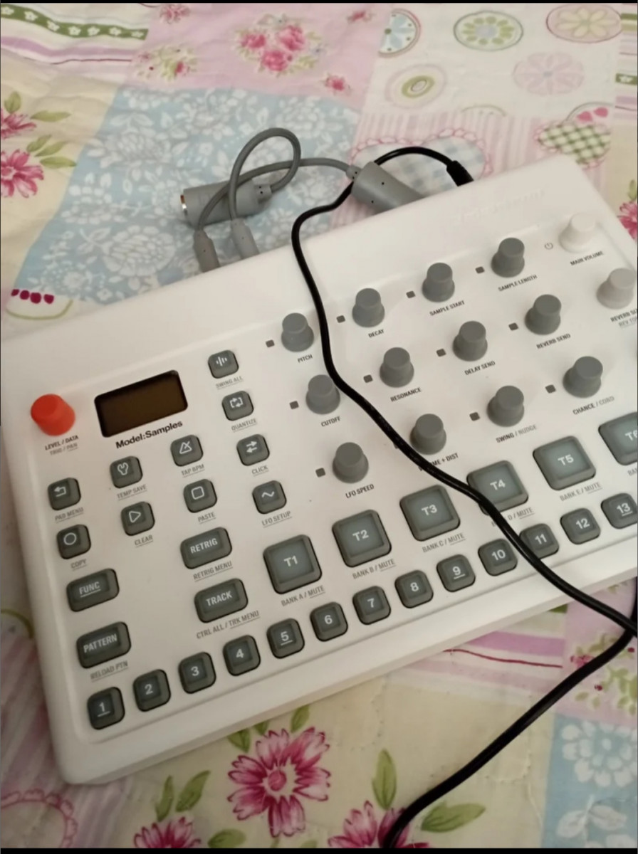 Todo el poder del secuenciador Elektron en formato económico. Caja original, adaptador de corriente y midi, USB y creo que hasta las pegatinas. La colcha no la incluyo.