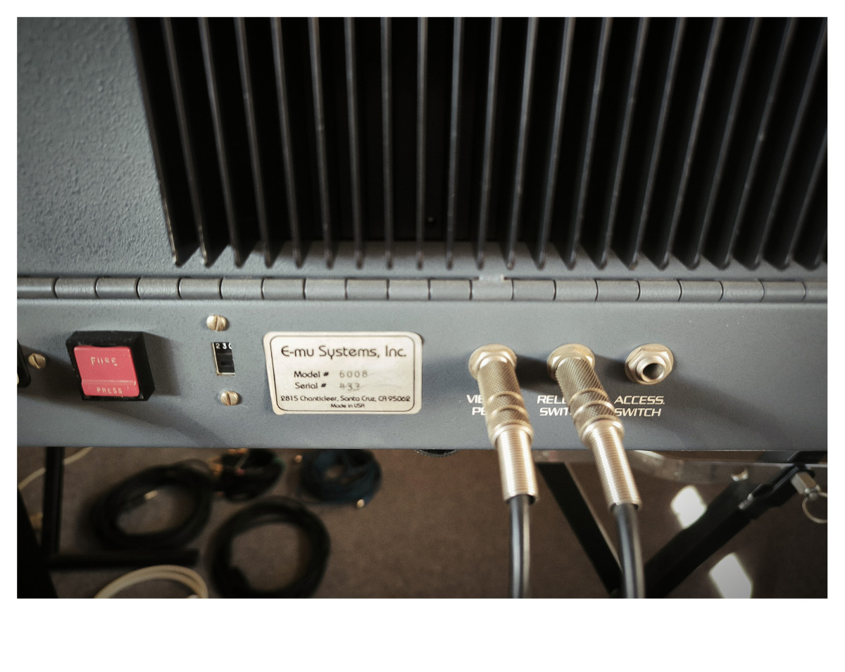 E-mu Emulator I en muy buen estado. Todas las teclas, botones y sliders funcionando correctamente. Modelo 6008 (1983) de 8 voces y secuenciador. Carga el sistema operativo desde los floppys junto con los sonidos; salva sonidos y samplea sin problemas.