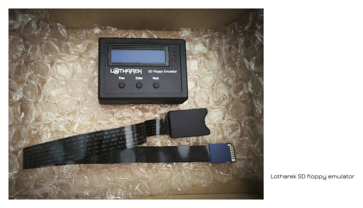 Incluye un emulador de disketera Lotharek, 3 floppys con sonidos y sistema operativo y una copia del manual de usuario.