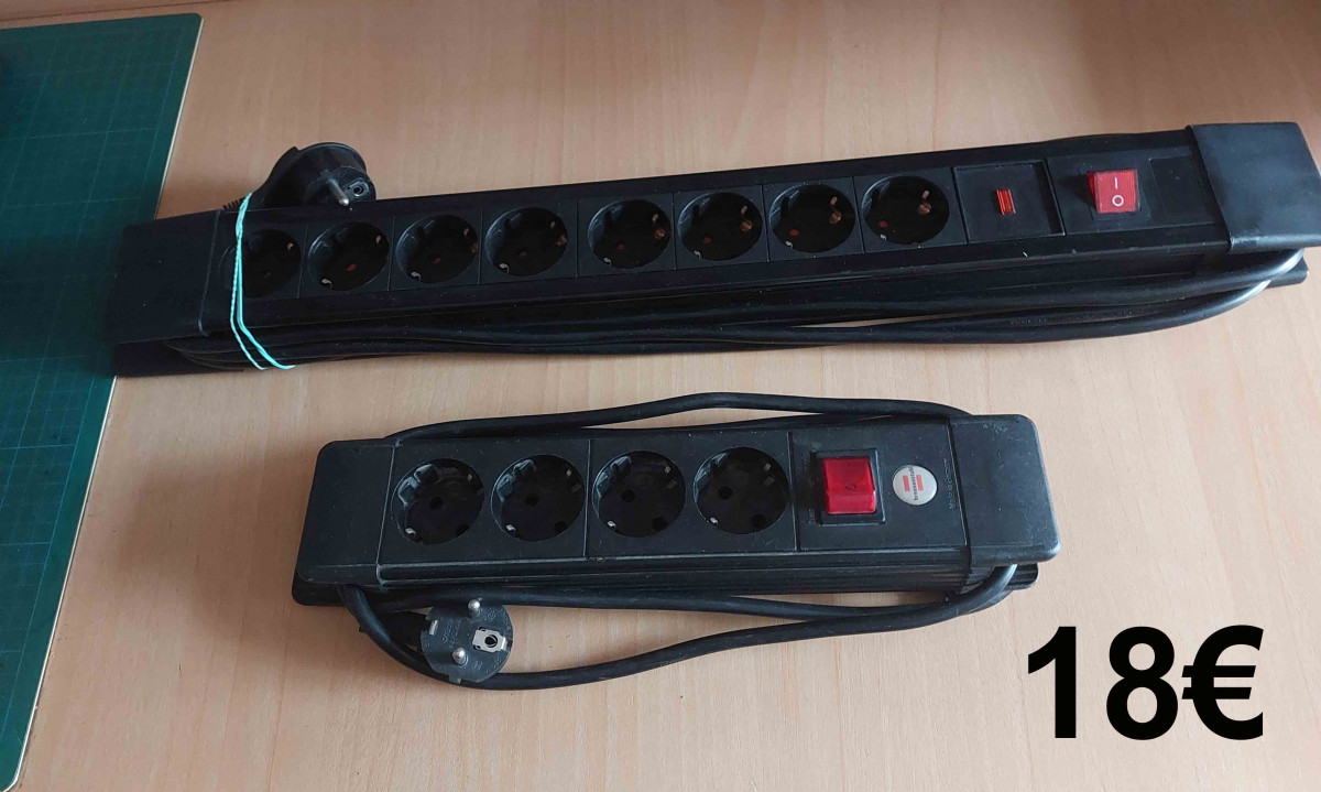 Regletas de enchufes con tomas de 10 de 8 de 4 y de 2 algunos con seguridad incorporada.