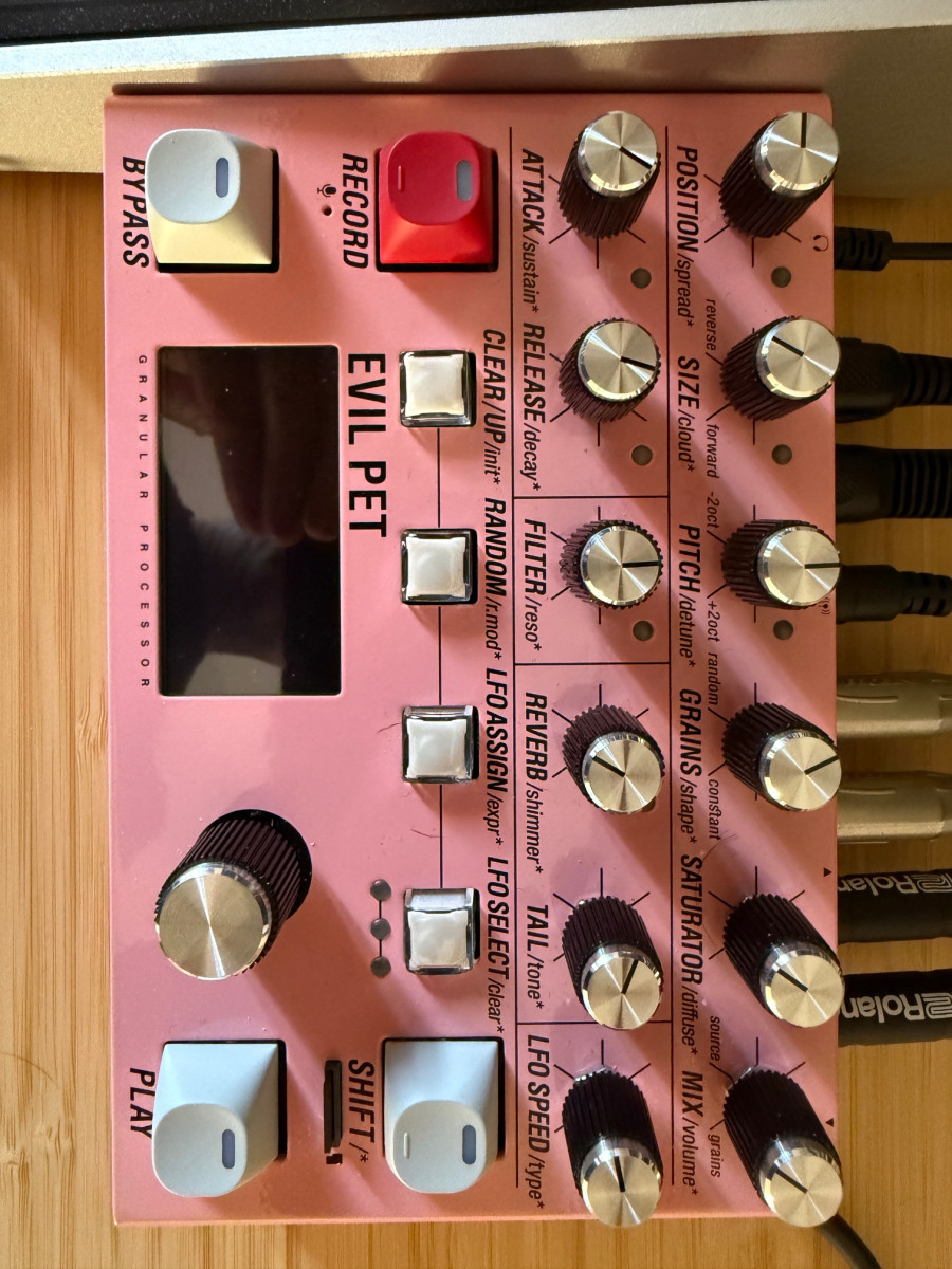 EVIL PET bites incoming audio into tiny grains and plays them in new, playful, or unexpected ways. Stretch, shrink, or flip the grains to create unique sounds, textures, and effects. Layer grains to make dreamy, glitchy, or swirling soundscapes. It works with any input - guitar, voice, synth, or drums - turning ordinary sounds into something magical.