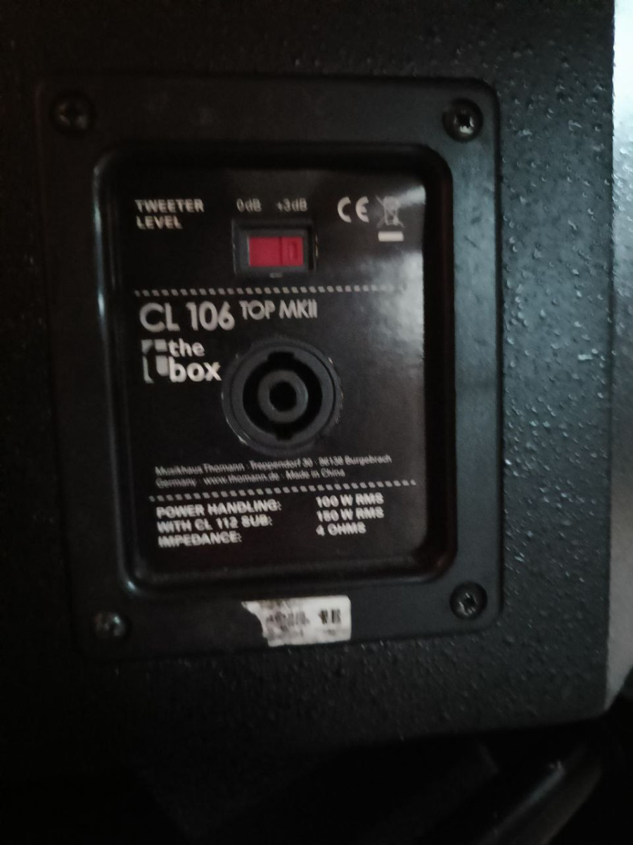 Equipo de PA T-BOX que incluye un potente subwoofer CL112 de 300w autoamplificado con ruedas muy cómodo y dos cajas de agudos de 400w de pico muy manejables. Incluyo dos cables speak-on con conectores neutrik de 10m cada uno para conectar las cajas al sub y el cable de corriente.