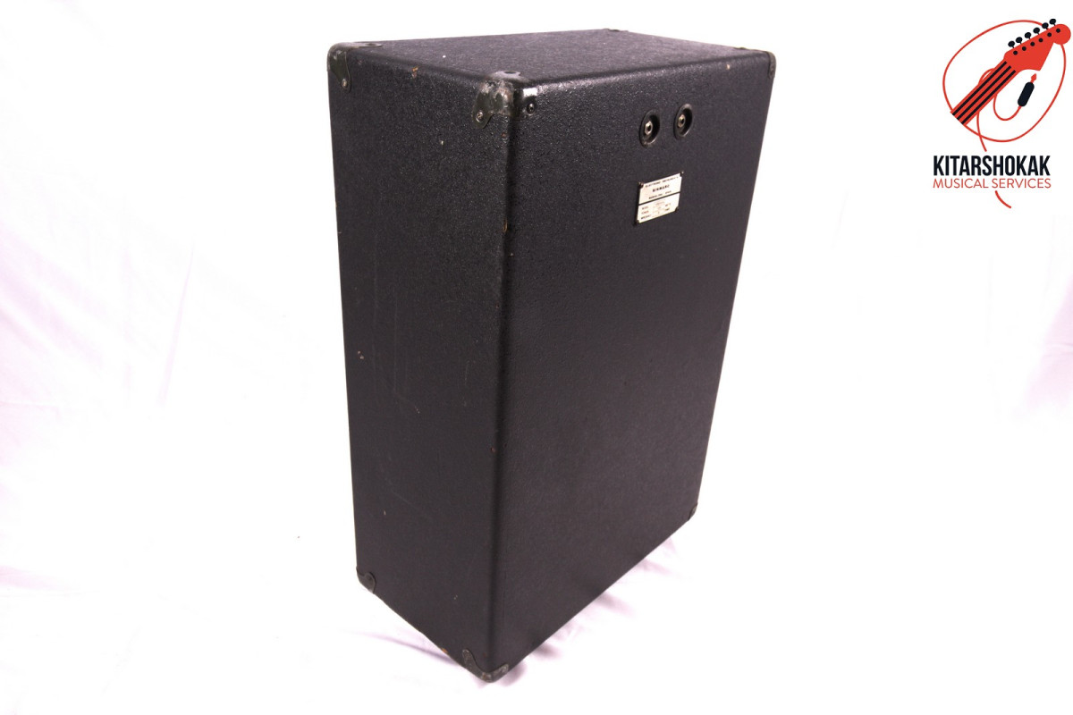 Conjunto de equipo de voces P.A. vintage que cuenta con un cabezal mezclador de 6 canales y dos cajas de 2×12″ de altavoces. El cabezal está estropeado. Ha quemado varios fusibles y ahora no se enciende. Las pantallas funcionan y suenan muy bien.