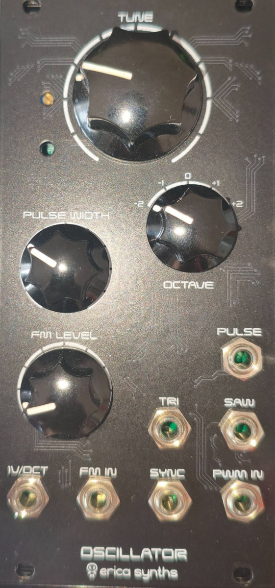 VCO analógico de transistores discretos con componentes rusos antiguos (NOS) ya no disponibles. Sonido crudo y grueso, con FM, PWM y sync. Muy raro hoy; carácter analógico real.