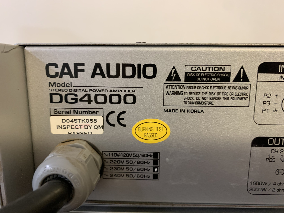 Vendo etapa Caf Audio DG4000 la más potente de la marca. Fabricada en Korea, no confundir con productos chino, tiene un nivel de manufactura de gama alta. Doble fuente de alimentacion conmutada. 20 transistores por canal. Abtenerse mareantes y no entendidos.