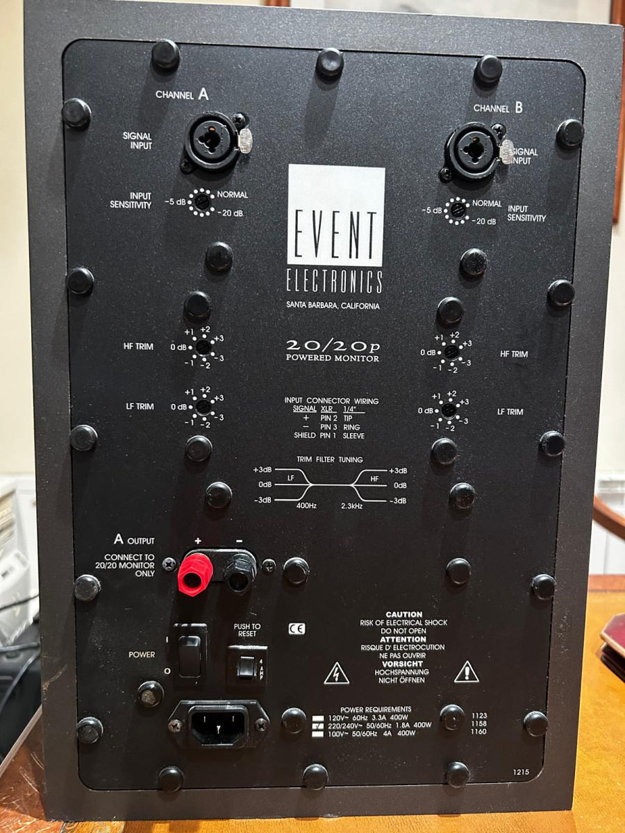Vendo unos Míticos monitores Event 20/20 autoamplificados de 8´ en muy buen estado. Son muy planos si quieres trabajar con este tipo de respuesta, son ideales. Recogida en mano, no envío ya que el monitor autoamplificado es bastante pesado y no conservo las cajas.