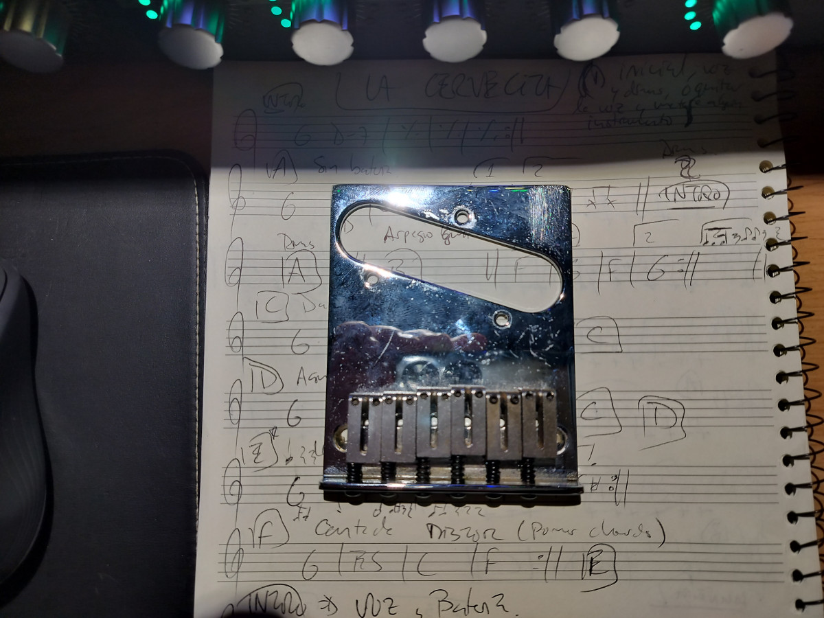 No obstante, incluyo el puente original de la guitarra, el estándar de 6 selletas macizas, completo y en correcto funcionamiento.