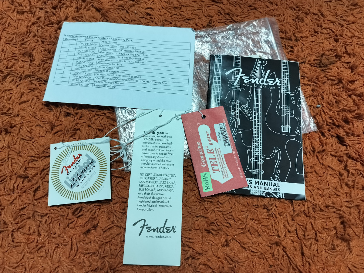Vendo Fender Telecaster American Series del año 2006. Sustituyeron a las American Standard alrededor del 2000, y volvieron a llamarse así más o menos en 2008. Diapasón de palorrosa. Acabado original en amarillo - crema, que se ha ido oscureciendo un poco con el tiempo. El golpeador original es negro, e iría incluído. El puente está cambiado por un Callaham Vintage American Telecaster Distressed estupendo, de acero inoxidable y selletas de latón, de aspecto envejecido. Una mejora brutal para la guitarra, en sonido, afinación, ajuste y estética, de unos 160 - 180$.https://www.callahamguitars.com/tele_bridge_AMSTD_catalog.htm