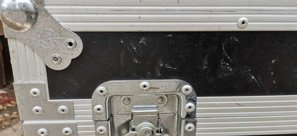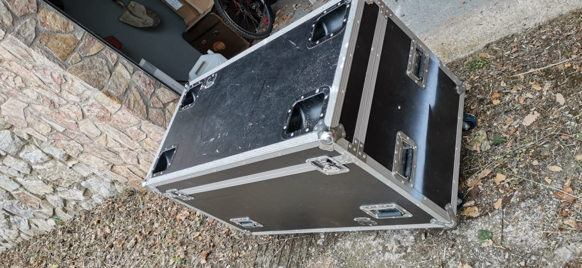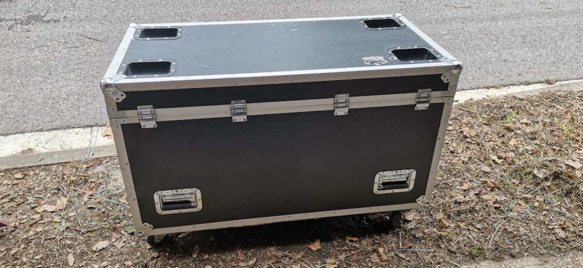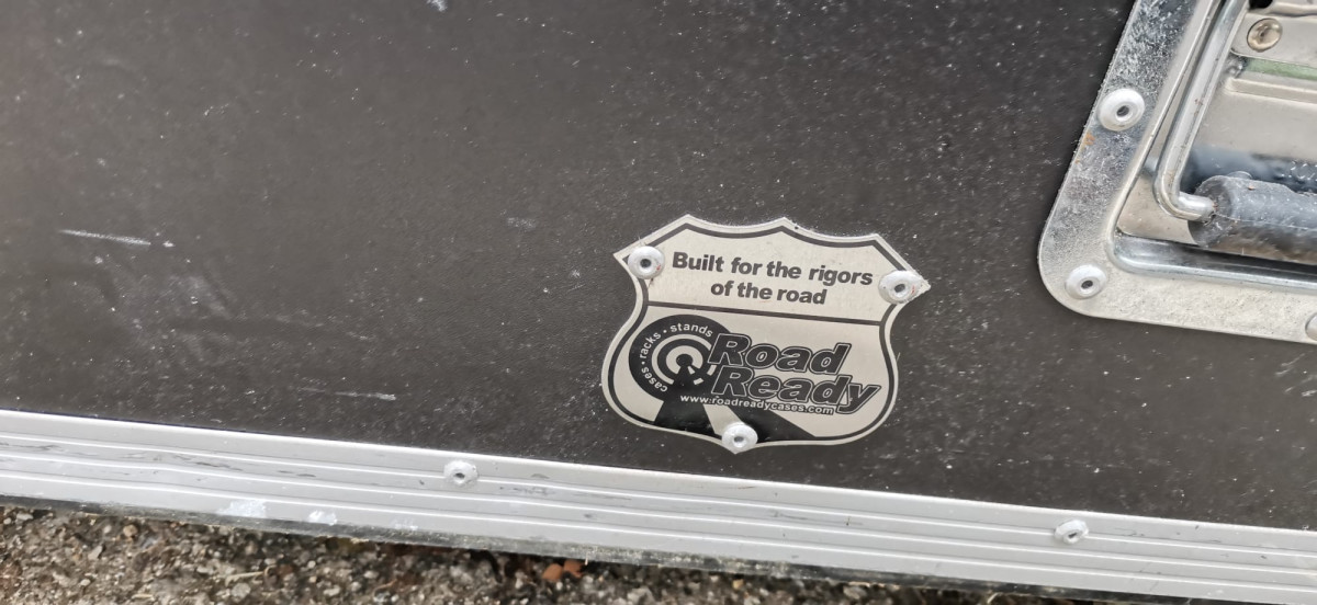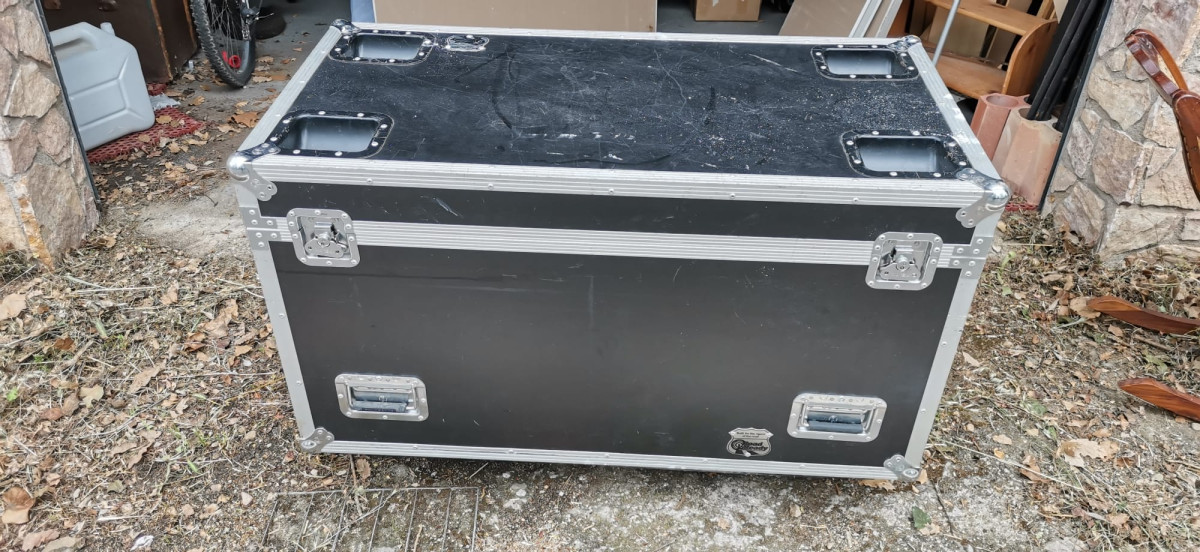 Flight case con ruedas de la Marca Road Ready. En perfecto estado funcional. Dentro lleva dos bandejas y varios separadores para clasificar el material. Todos los cierres van perfectos. Las ruedas tambien. Ha viajado muy poco. Solo tiene daños estéticos superficiales en la madera.